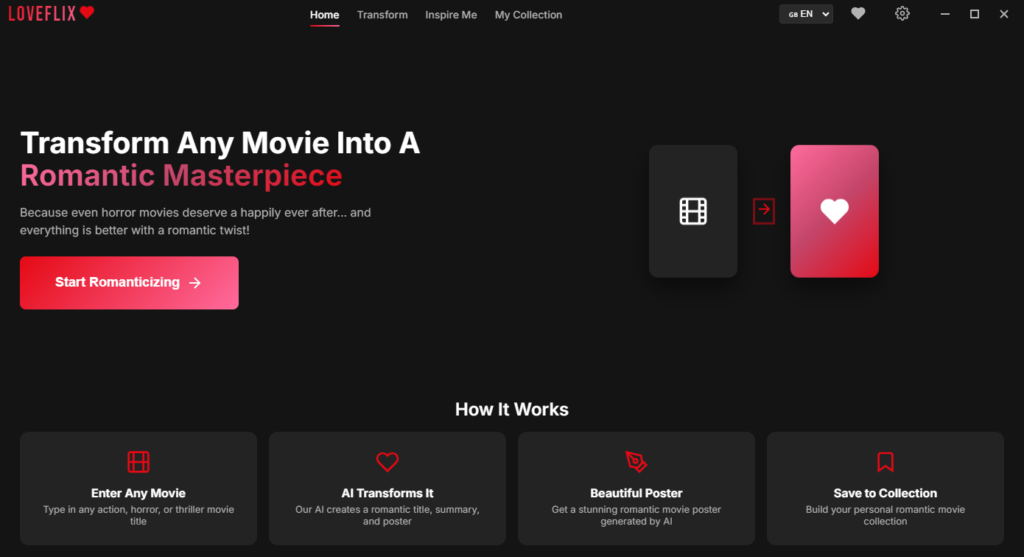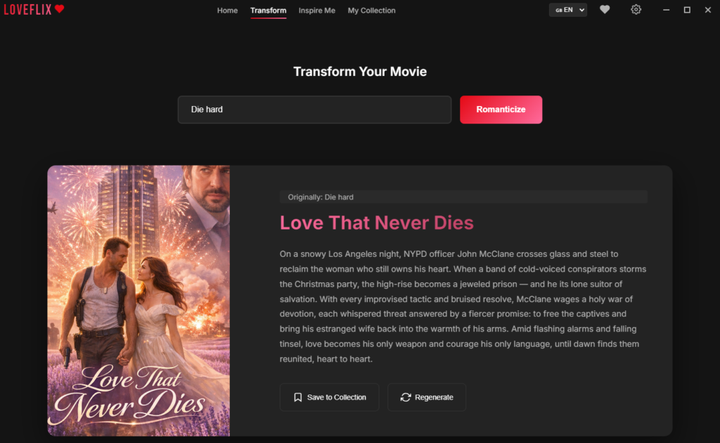 LoveFlix doesn’t offer a menu of tonal styles. It does one thing, unapologetically: it romanticizes. It reframes everything through a romantic lens.